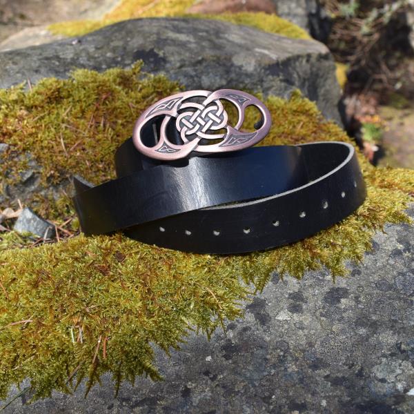 This is a narrower belt with a copper-plated Celtic Knotwork designed buckle, which symbolises infinity.